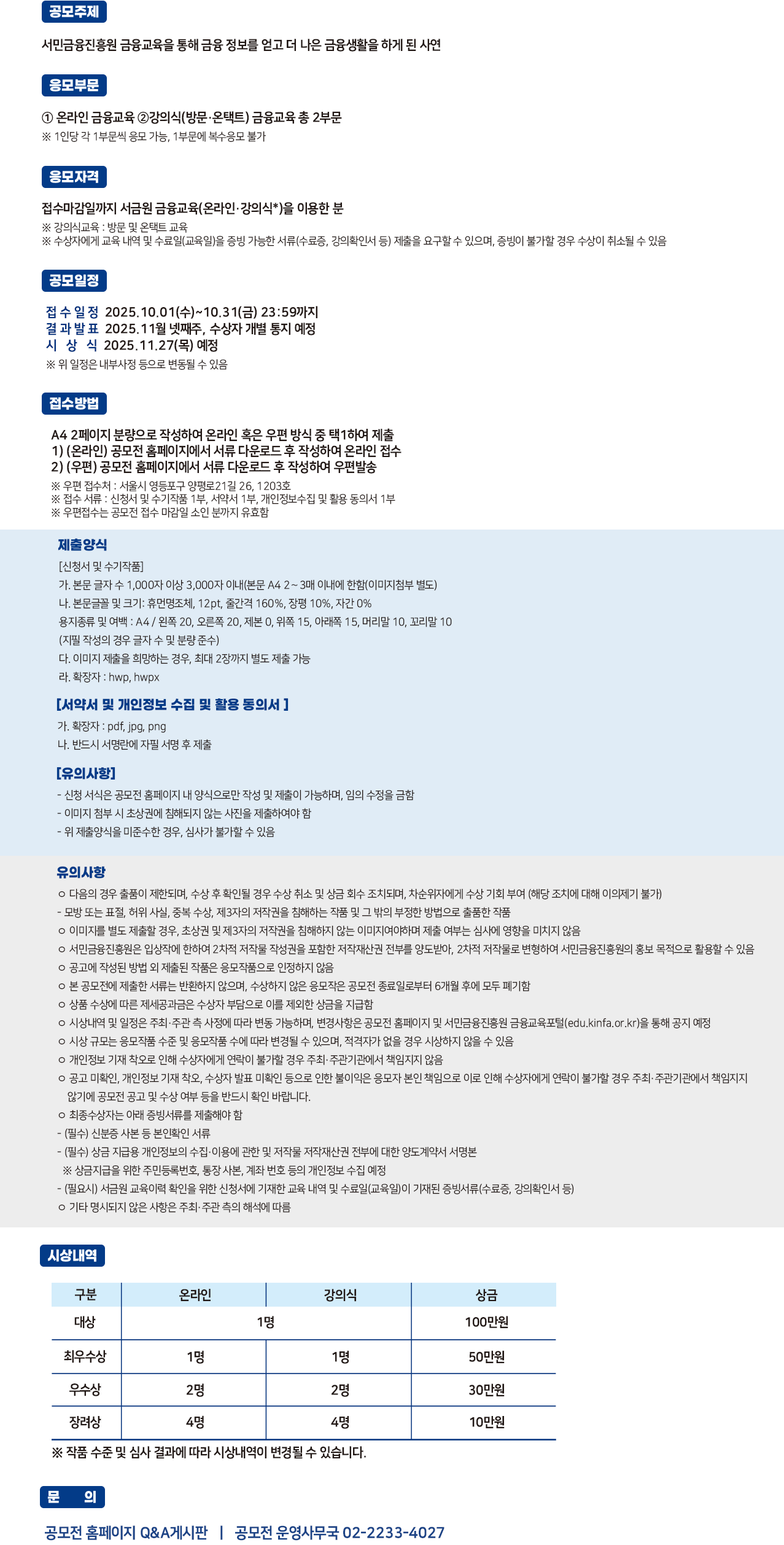 서민금융진흥원 금융교육 우수사례 공모전운영사무국 / 문의전화 : 02-2233-4027